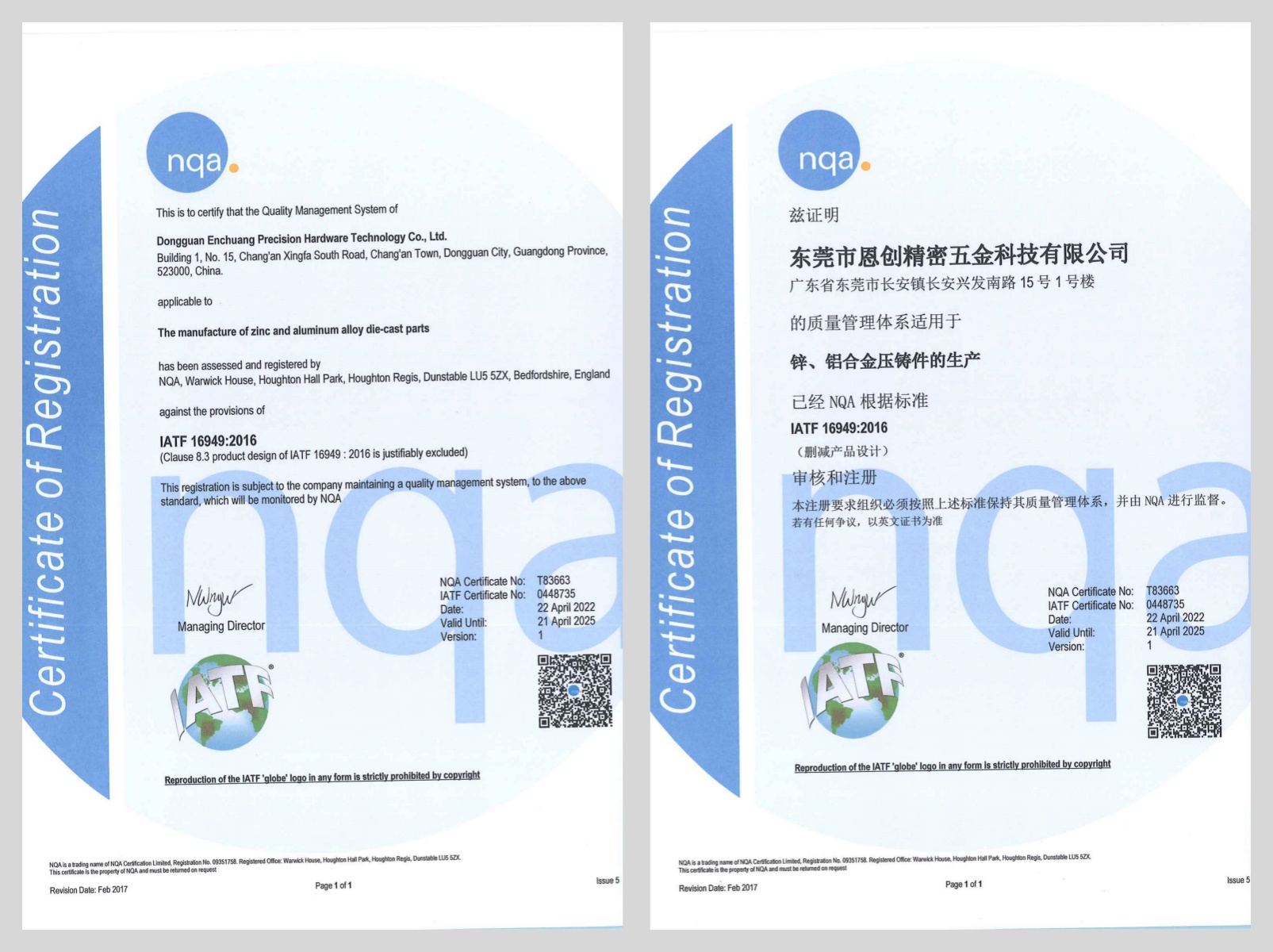 增強企業的核心競爭力,確保恩創科技在汽車配件壓鑄及連接器外殼壓鑄領域始終保持卓越的品質標準。以全員參與的方式,凝聚團隊力量,共同為提高產品質量、提升客戶滿意度而努力。