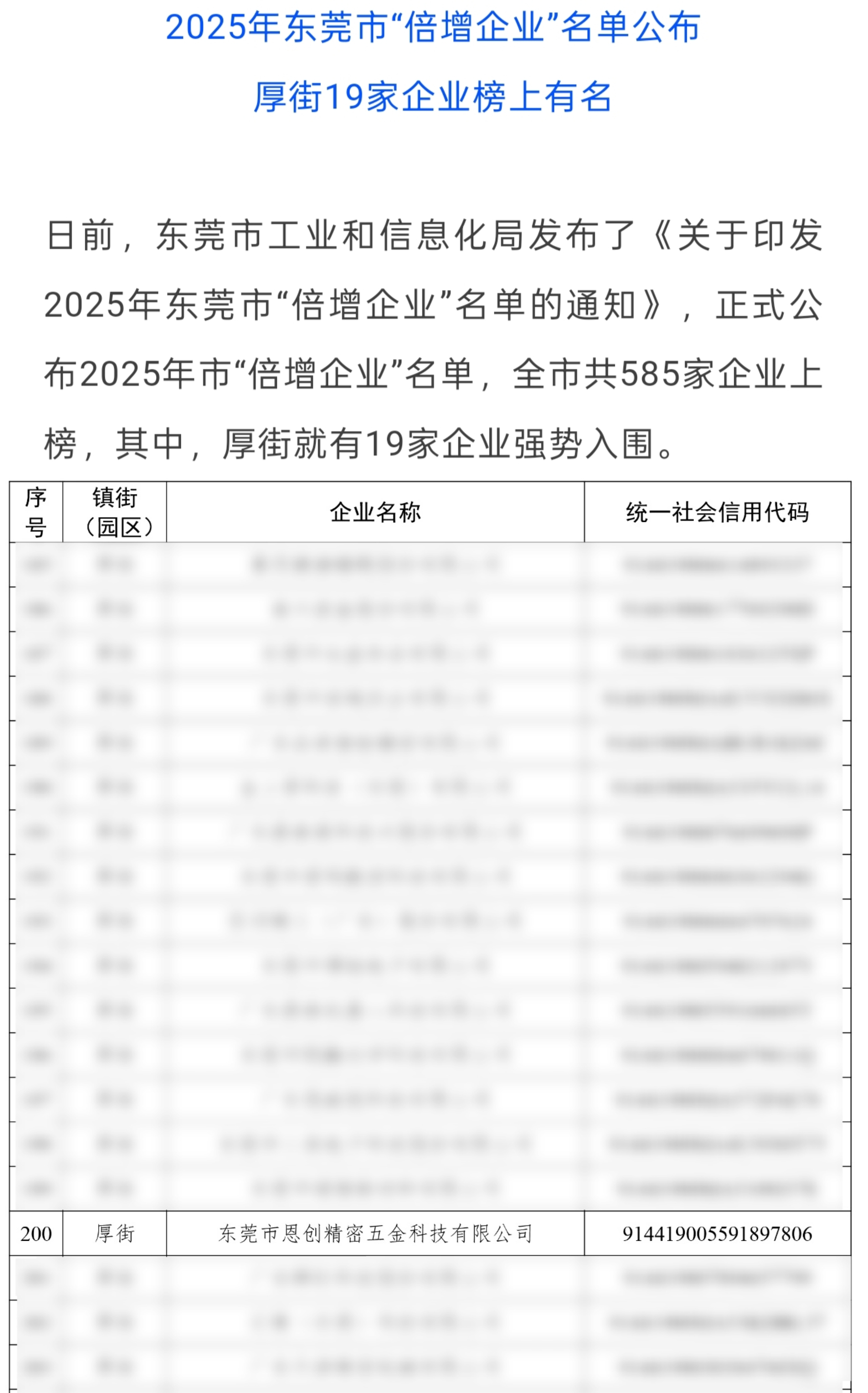 今日,我們懷著無比激動的心情,向全體同仁、合作伙伴及社會各界朋友宣布一個重磅喜訊:恩創(chuàng)科技憑借在精密壓鑄領域的卓越實力與突出貢獻,成功入選 “東莞市倍增企業(yè)” 名單!這份榮譽,是市政府對我們過去努力的高度認可,更是對恩創(chuàng)科技未來發(fā)展?jié)摿Φ纳钋衅谠S。
